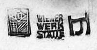Despite the communal spirit of the Wiener Werkstätte there were accommodations for individual recognition. Products were imprinted with both the workshop symbol and marks identifying each designer and craftsman involved in the production. The image below displays the symbol for the workshop, the monogram for the Wiener Werkstätte and the personal logo for Joseph Hoffmann. ![]() |